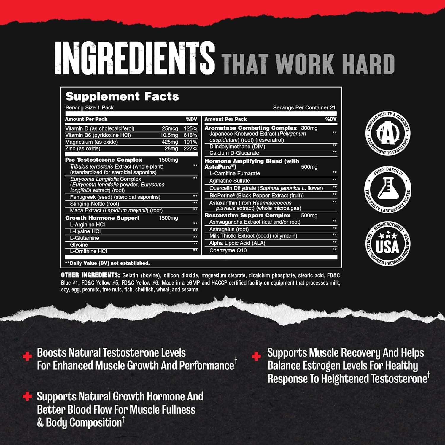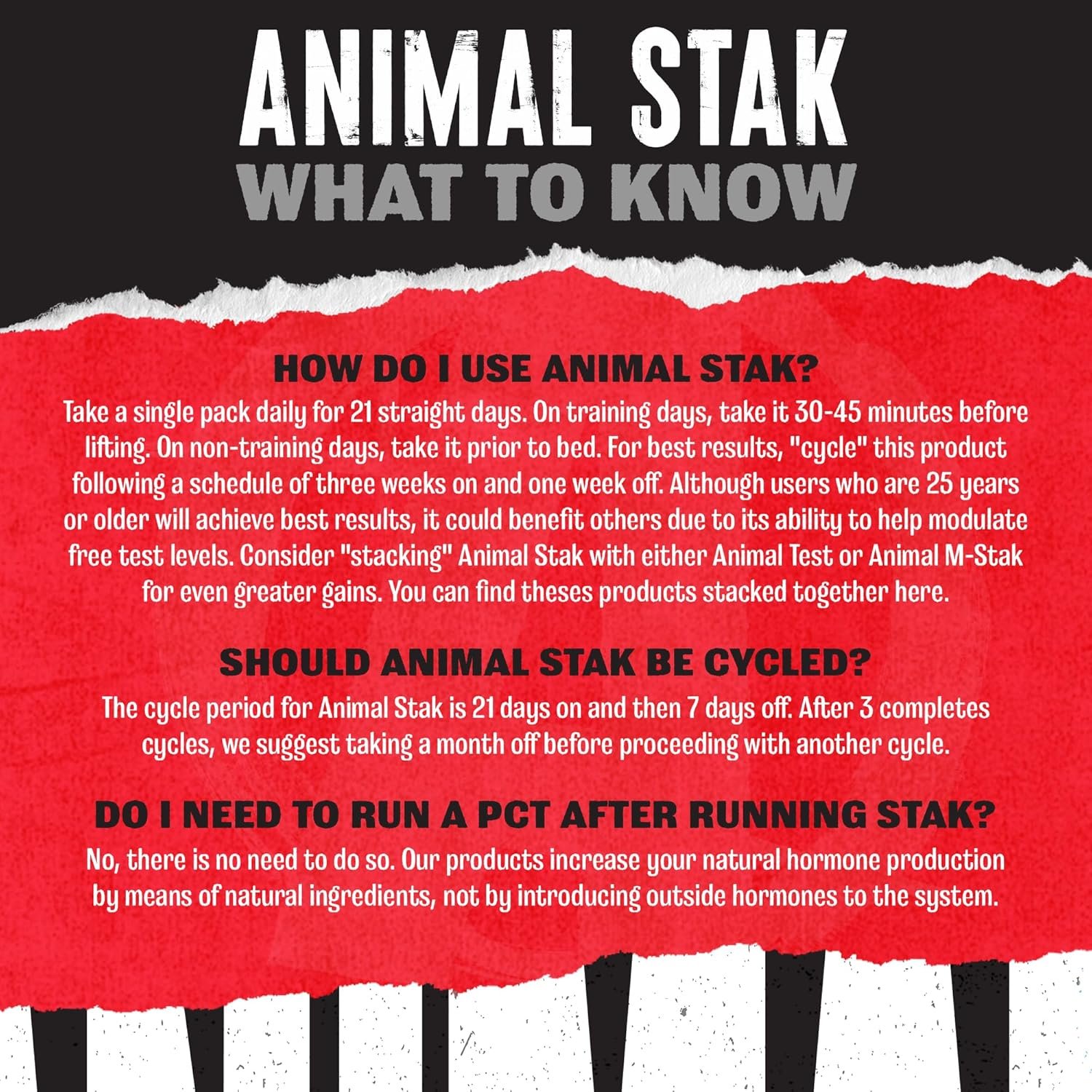Animal Stak by Animal is a premium natural hormone booster supplement designed specifically for athletes looking to break strength plateaus and build muscle mass. This stackable pill pack naturally elevates testosterone and growth hormone levels while blocking estrogen, helping to boost energy, power, and overall performance. Manufactured in a GMP-certified US facility with rigorous third-party testing, Animal Stak has been trusted by athletes for over 40 years to deliver quality and results. Perfect for those serious about pushing their fitness limits.